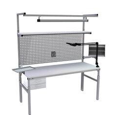 - Praktischer Arbeits- und Montagetisch mit oberem Etagenbord